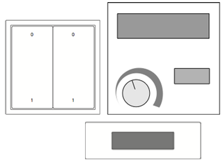 EnOcean is a technology for wireless, usually self powered (energy harvesting) buttons, sensors and actuators.